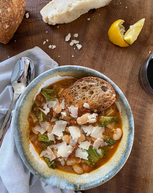 Black Pepper, Cannelli Bean, Celery, Chicken Stock (Bay Leaf, Carrot, Celery, Pasture-raised Chicken Bones, Onion, Parsley, Thyme, Tomato Paste), Egg, Escarole, Extra Virgin Olive Oil, Fennel, Garlic, Onion, Oregano, Parsley, Pecorino Romano, Red Pepper Flakes, Tomato